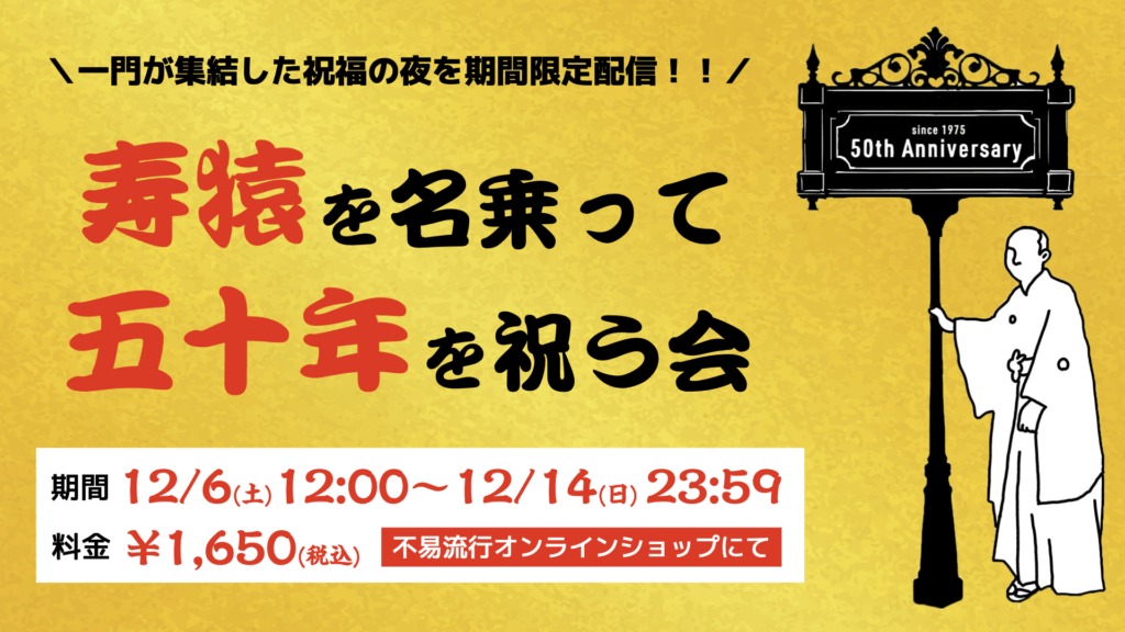 【配信】「寿猿を祝って五十年を祝う会」配信のお知らせ